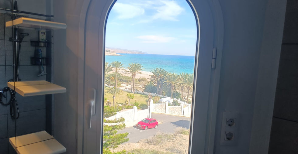 In just one minute, you'll reach the beautiful sandy beach — featuring a naturist section at one end and marking the start of the breathtaking 18km stretch of Jandía playas. It's the perfect spot for relaxed, clothing-optional walks along endless golden sands under the warm sun.